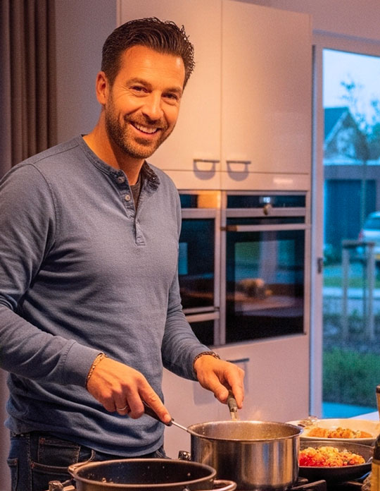 Je kookt uitgebreid, gebruikt oven of inductieplaat, zet de was aan, laadt je auto op en laat gerust meerdere apparaten tegelijk draaien. Je verlichting, tv en internet blijven vanzelfsprekend aan én alles draait op energie die je eerder die dag zelf hebt opgewekt.