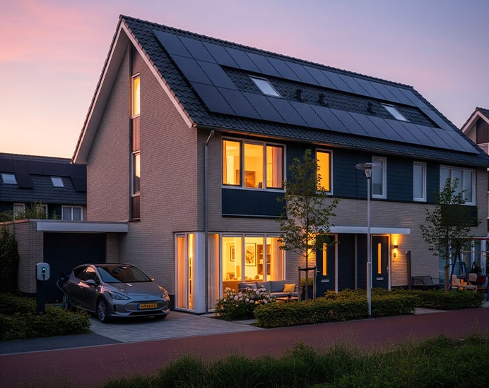 Het is avond. De kookplaat draait, de vaatwasser staat aan, je gooit een was in de machine en je auto krijgt alvast een paar extra kilometers voor morgen. Ondertussen kijk je tv, je router draait, en je koelkast doet z’n werk. Allemaal op stroom die jij eerder die dag hebt opgewekt.